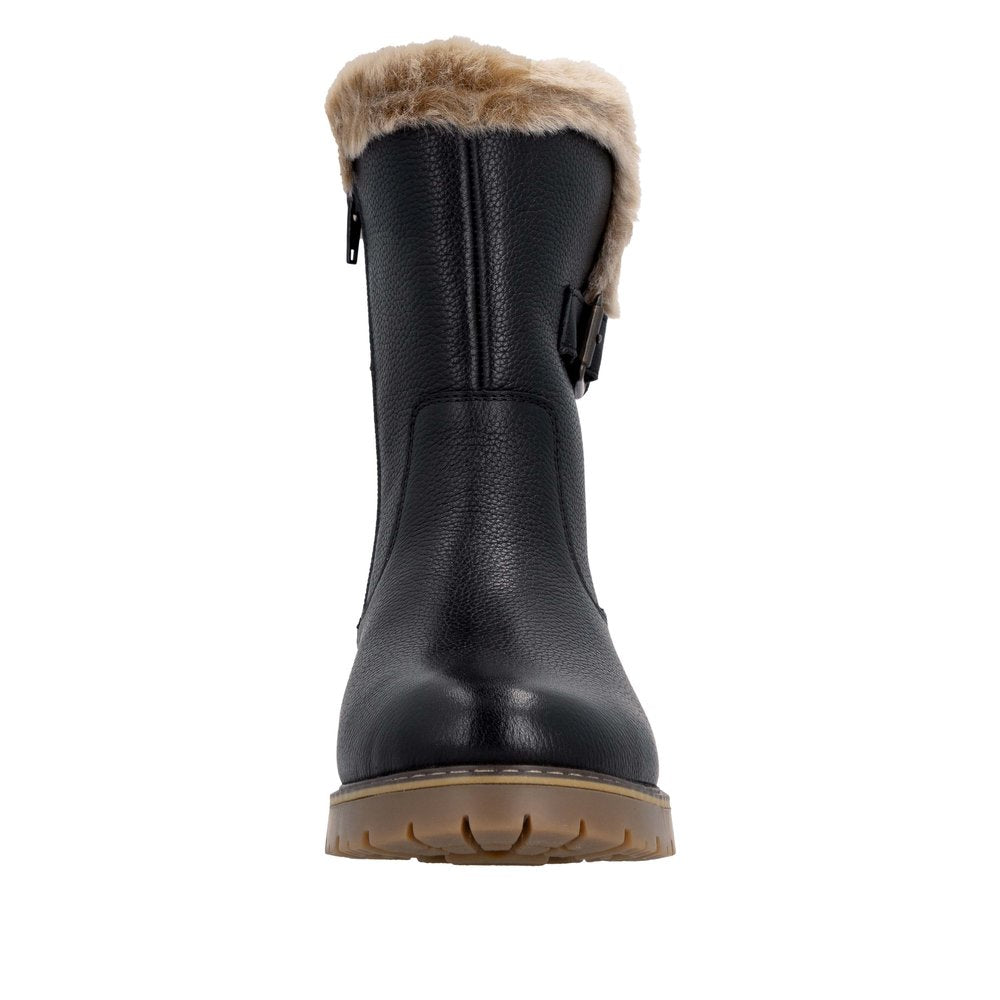 The full load of style vibes! These comfortable black brown Remonte ankle boots made of smooth leather impress with a cool look and functional power. The zipper makes the shoe easy to put on and take off. The fluffy shaft edge provides the perfect finish and a striking look. The grippy and cushioning sole provides sure-footedness. The model ensures additional freedom of movement for the foot, as it is cut in comfort width. This model is all about function times three: the water-repellent membrane keeps the feet dry, the fold-out spikes can be used for extra grip on icy floors and the insole with thermo function protects against the cold. Cozy and very warm virgin wool keeps the feet warm all day long. Let's enjoy the cold days!