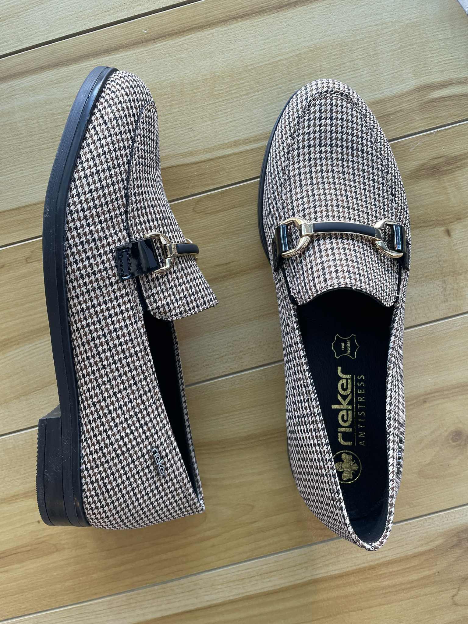 Step into style with the Rieker classic Loafer, in a fun plaid with horsebit detail. Combining their signature design, fit and comfort, these shoes make a perfect addition to any outfit. The sleek, slip on loafer silhouette make them invitingly versatile.
